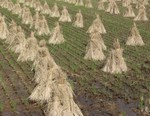 2008-11-16 藁塚 「藁ぼっち」と覚えていたが、刈り入れの終った田に脱穀したあとの藁束を積み上げたもの。にお。積み方は地方によって異なる。田畑の肥料や牛馬の飼料にする。秋の季語、にお(にほ)は傍題。 藁塚も屋根も伊吹の側に雪 橋本多佳子 藁塚が見えて目のふち痒きかな 高柳重信 おのづから藁塚の影むらさきに伊豆の涸田は冬日あまねし 吉野秀雄 藁塚のにほひははたと思想こばむ分別もなく父母恋ひし 前川佐美雄 川一筋越えしばかりに藁塚のかたち異る播磨のくには 三国玲子