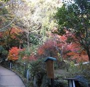 湯河原の万葉公園も紅葉の名所といってよい。渓谷沿いの道を歩けば堪能できる。「文学の小径」と名づけられた道には、多くの文学者のさまざまの詩歌(俳句、短歌、漢詩、詩など)が書かれた札が、間隔をおいて立てられている。与謝野晶子夫妻や国木田独歩の立派な石碑などもある。公園の一番奥に「独歩の湯」があり、「喜の泉」「脈胃の泉」「思考の泉」「腸鼻の泉」「平静の泉」「皮口の泉」「腓骨の泉」といった七つの足湯をめぐることができる。朝日の渓谷をたどると気分爽快である。