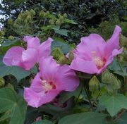 2014-08-10 芙蓉 アオイ科の落葉低木。掌状の大きな葉で初秋に淡紅色の五弁の一日花を開く。白芙蓉は珍しい。中国で芙蓉は蓮のことなので、間違えなようにキハチス、モクフヨウとも。 白芙蓉暁けの明星らんらんと 川端茅舎 今散りし芙蓉の花に蟻わたる 星野立子 かがやきは尽きて閉ぢゆく芙蓉花の皺む花辨に色溜りくる 初井しづ枝 白芙蓉けぶるが中のわらべうた涙ゆくりなく佇ちつくすわれは 坪野哲久 曇りゐても晴れても芙蓉はおほよそに同じ時刻に花閉づるらし 佐藤志満 睾丸といふ語も失する世となりて風にしきりに反る醉芙蓉 竹山 広